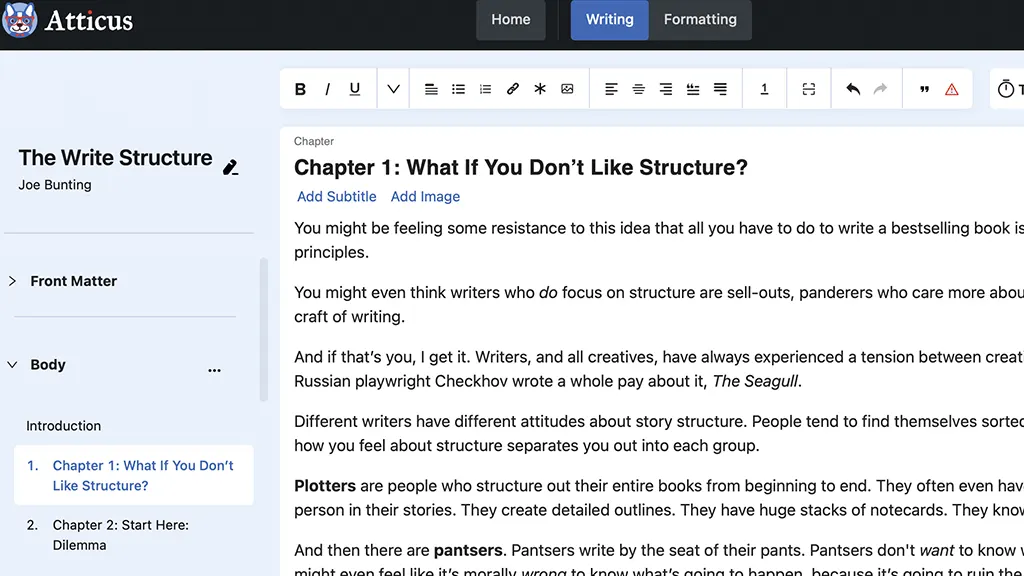 Atticus is a text processor that also functions as eBook formatting software. It has a slew of useful tools, including pre-built eBook templates, chapter planning, and daily word goals, to help you increase productivity.