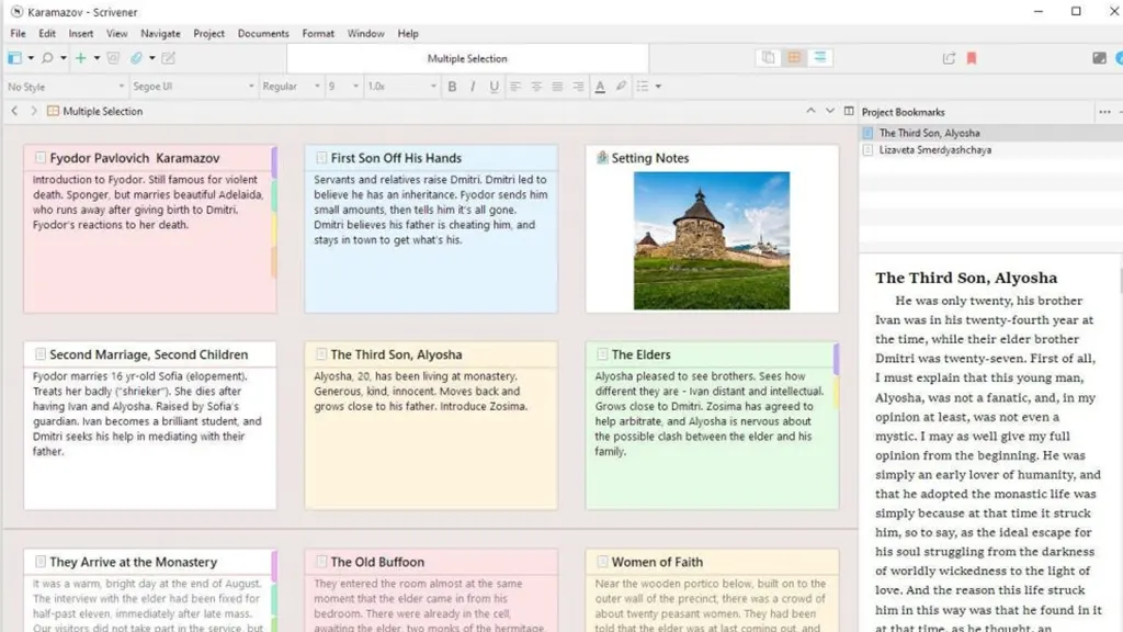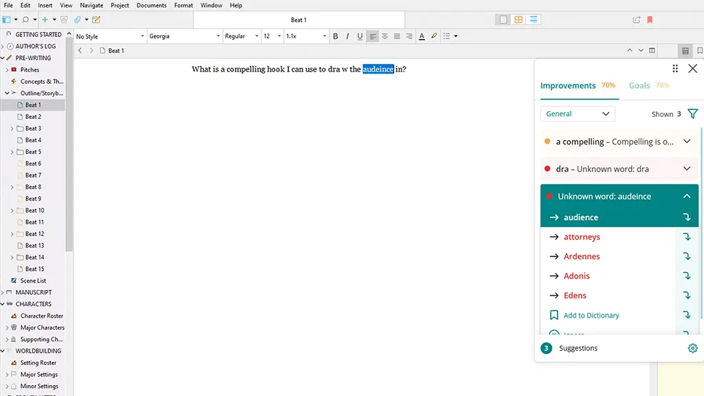 - Integrated Workspace: The tool can save notes, research, photos, PDFs, and audio files in the same project as your manuscript.
