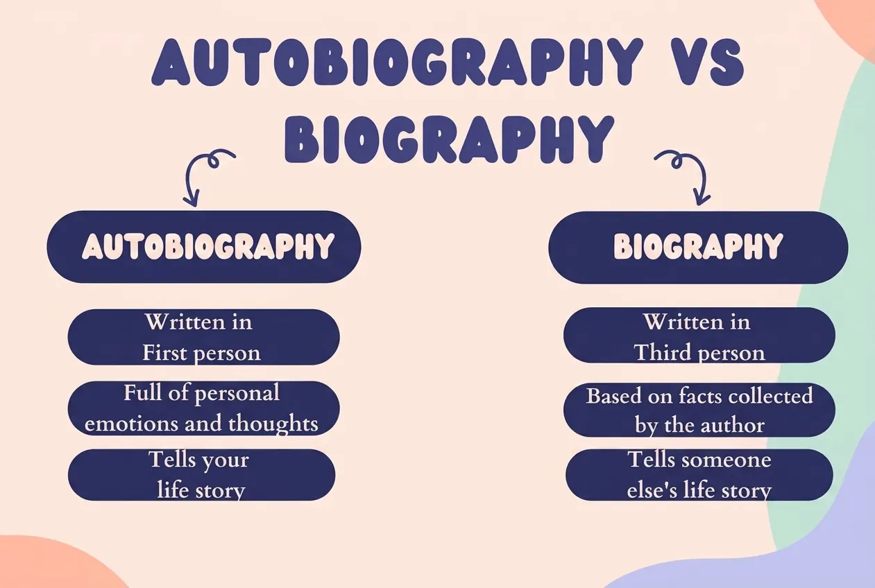 Ans: One of the main differences between biography and autobiography is authorship. Another person tends to write your biography. While an autobiography is written by the same person.
